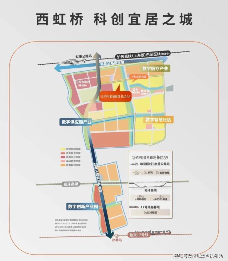 保利虹桥和颂·IN255不仅有轨交规划正在落地,且直线距离示范区线赵重公路站(在建)仅约350米,是不可多得的真轨交盘,2站前湾、3站虹桥枢纽、5站华为基地。