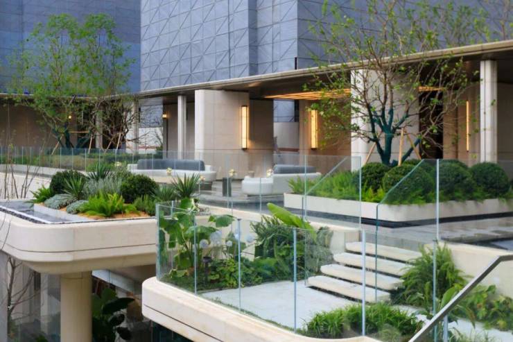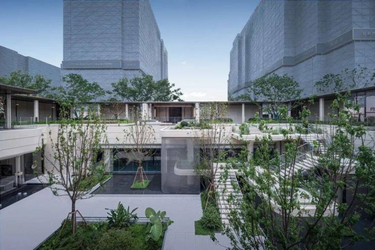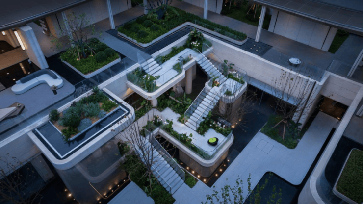 招商序创新式打造4层悬浮式下沉园林,整个立体庭园,汲取了海派大师邬达克封笔之作「曾经的远东第一豪宅-吴宅」精髓,力求“宅、园、水、院”立体交融,借天地之景,纳四时之变,将人间春色凝于一园。