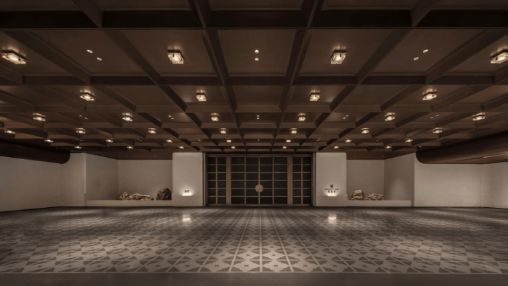 另外,项目首层通过硬朗直线呼应柔和曲线勾勒,辅以温润石材与古铜色金属线条融合,打造东西方美学共融的艺术藏品。