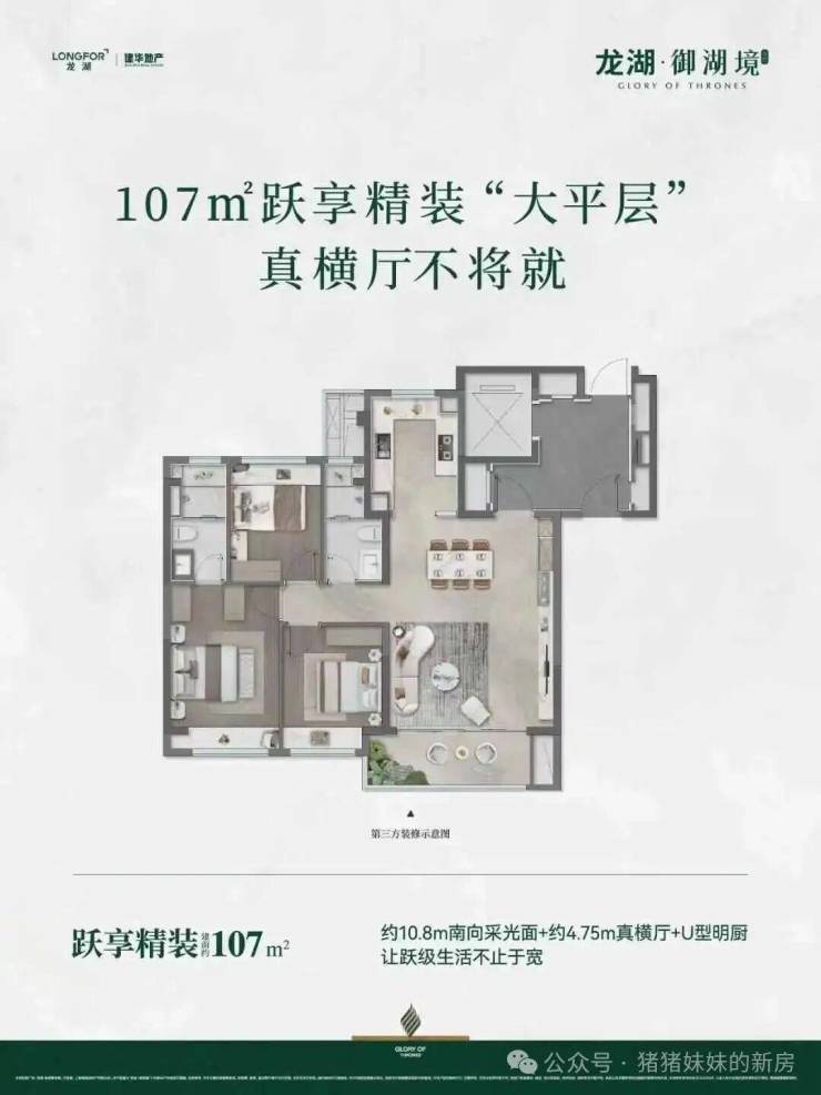 约107㎡精装交付大三房,真横厅不将就,小户型也能住出“大平层”般的越级体验!
