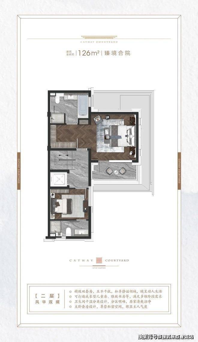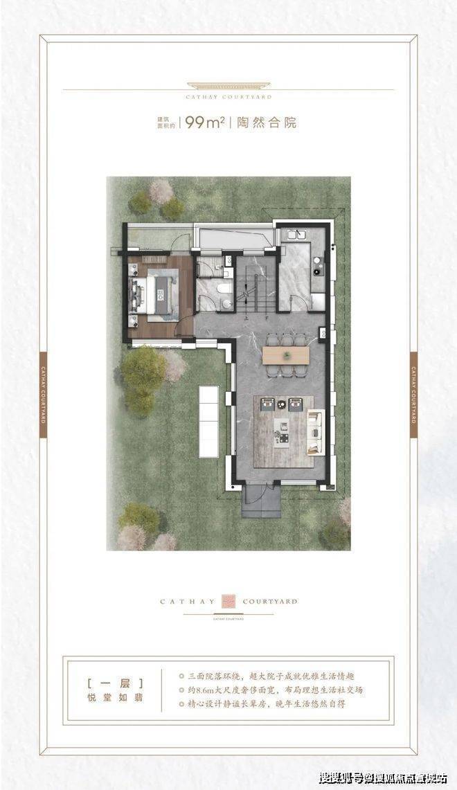 户型特点:独门独户独院设计,配备 50-80 平方米私家庭院,附赠地下室、露台等空间。99 平合院实际使用面积约 270-330 平,126 平合院实际使用面积约 300-370 平,188 平合院实际使用面积约 430-520 平。