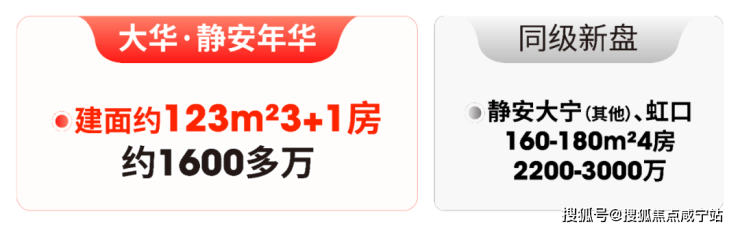 4房同样如此,市面同类产品普遍建面160-180㎡,总价2200万起步;大华·静安年华123㎡“3+1”房,总价1600多万,既满足大家庭“一步到位”的需求,又降低了改善成本。