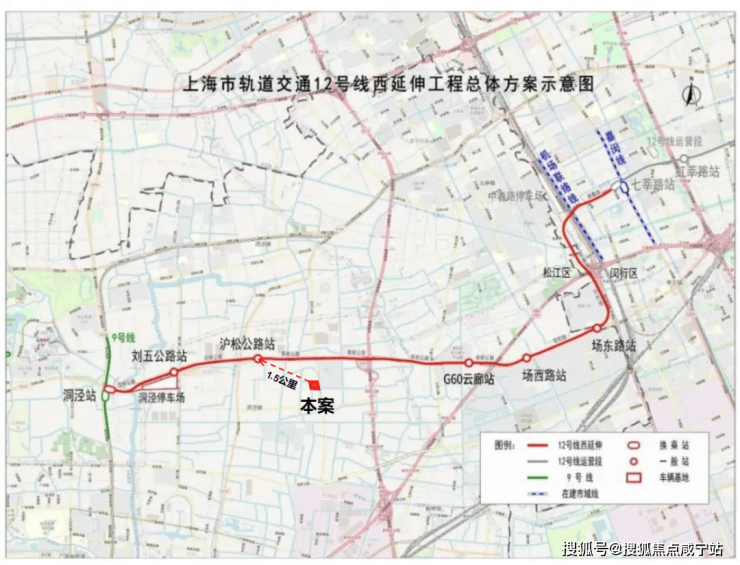 距离12号线西延伸(规划建设中)沪松公路站直线约1.5公里