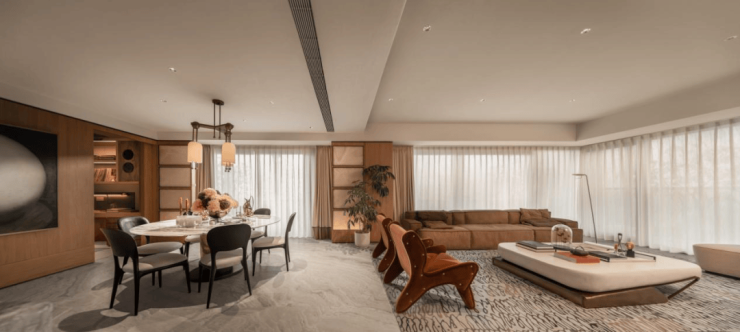就连地下车库也有巧思,石材、金属与玉质的材质转换,让停车成为审美体验,三重归家动线层层递进,仪式感从地下延伸至入户。