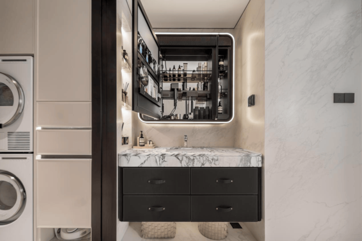 标配家政空间,洗衣烘干机、清洁柜齐全;