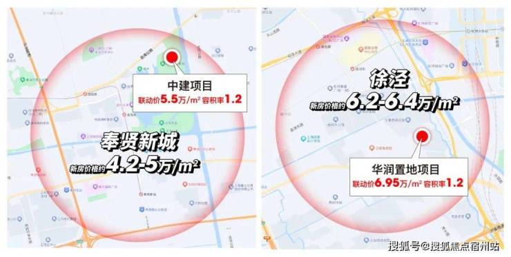 比如徐泾板块新房均价普遍在6.2-6.4万/㎡,而容积率1.2的华润项目就是能达到6.95万/㎡。再比如奉贤新城均价普遍在4.2-5万/㎡,而容积率1.2的中建项目联动价高达约5.5万/㎡。