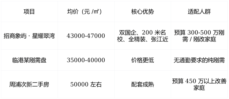 四、横向对比:浦东刚需三强,谁是性价比之王?