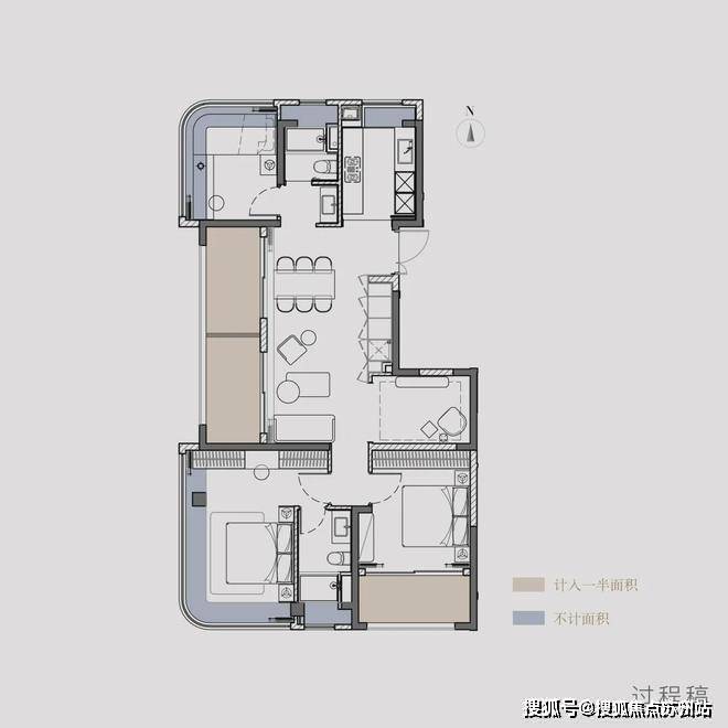 阳台+飘窗算下来,约108㎡户型的实得率达到了惊人的约87%,实得面积约94㎡!