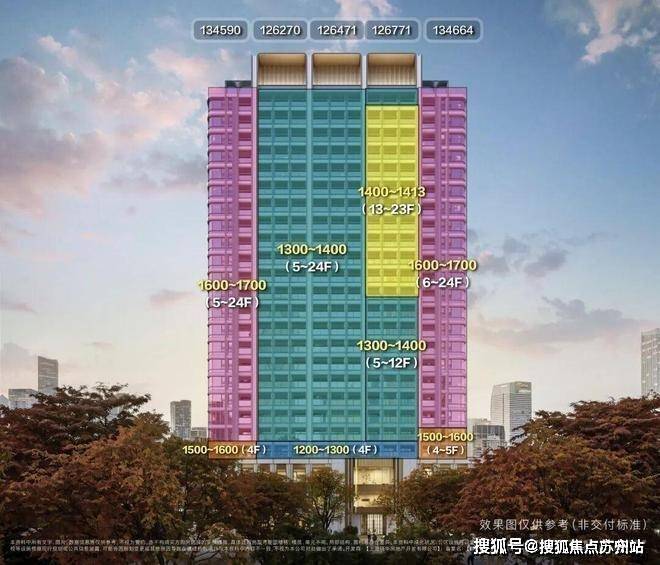 也正是因为住宅房源起步就是4层,均好性比较强,所以开发商在定价的时候楼层价差做得非常小,我们慢慢来讲,先看一下楼栋价格。