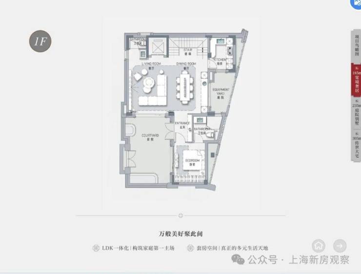 下叠F1-2 面积:约181平方米,赠送送地下室(约154-172平方米)赠送花园、阳台、阁楼, 总价约3040-3130万(已售罄 )