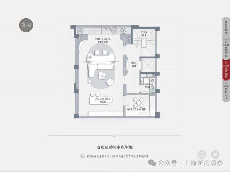 建面约235平方米,赠送地下室:约130-140平方米;赠送花园、露台、阁楼,总价约4050-5000万