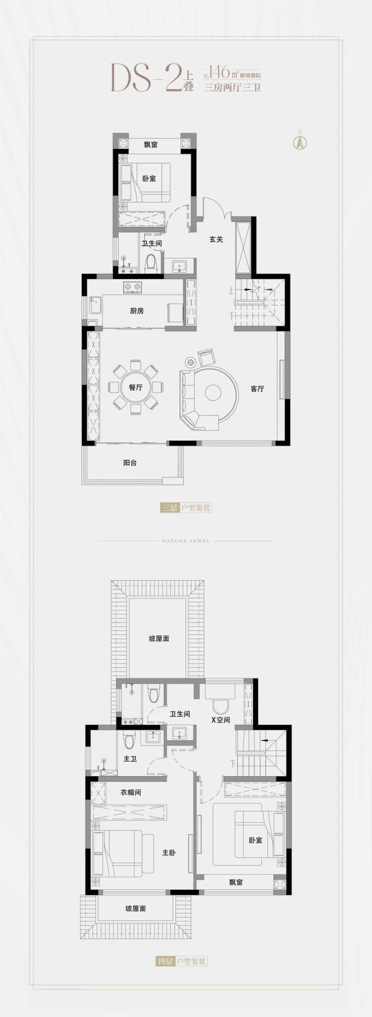 上叠建面约146㎡3房2厅3卫