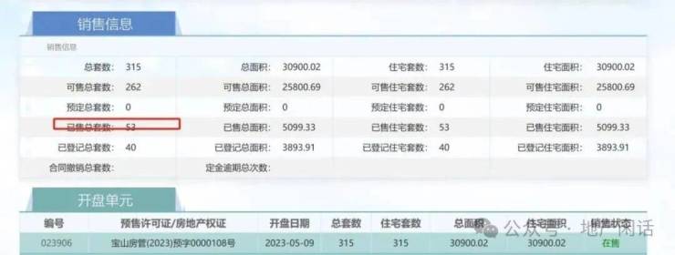 最近去看了一个宝山的盘,在很多渠道、机构、甚至营销人眼里,如果从销售结果论,这个盘无疑是失败的。从2023年5月13日开盘期间迄今两年时间,取证315套,仅售出53套,这个结果着实有点惨淡。