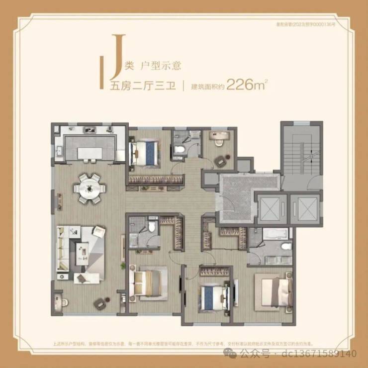 【建面226㎡5居】1900-2100万,5室2厅3卫, 南朝向,楼栋分布于6号楼/8号楼/11号楼