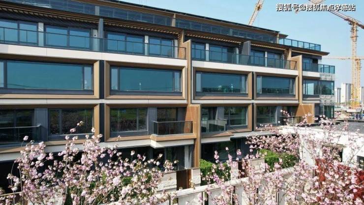 「国贸·海上原墅」售楼处预约热线:400-8855-420📲叠墅立面采用大面积玻璃,局部石材+铝板线条,山墙区域为涂料!