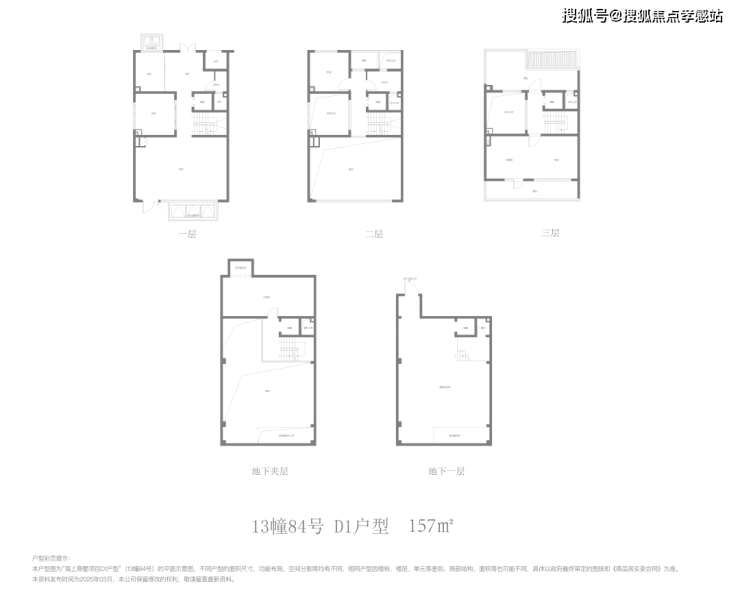该户型整体面宽约8.1米,进深约16.15米,交付预留电梯井,附赠两层地下室;