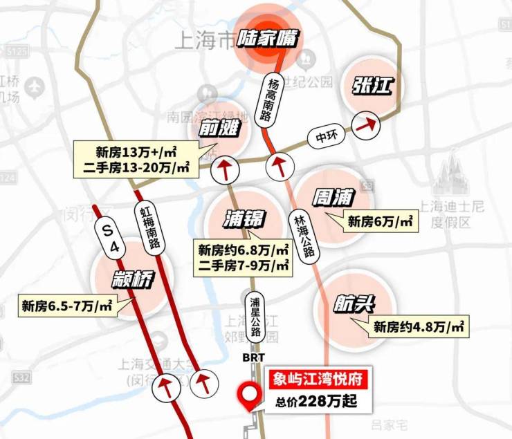 2、在浦星公路、林海公路便捷交通加持下,项目与大浦东及闵行的价格剪刀差巨大,性价比超高。