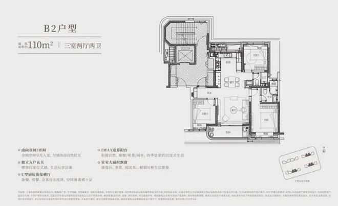 建面约110㎡中间套(B2户型)✅✅中环铂樾售楼处电话:400-8787-740✅✅,也同样做到了南北通透,三开间朝南,洄游动线,布局合理,无论是空间尺度还是通风采光,与边套享受一样的品质感!
