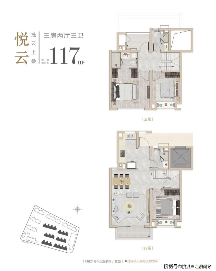 建面约117m²3房2厅3卫(上叠)
