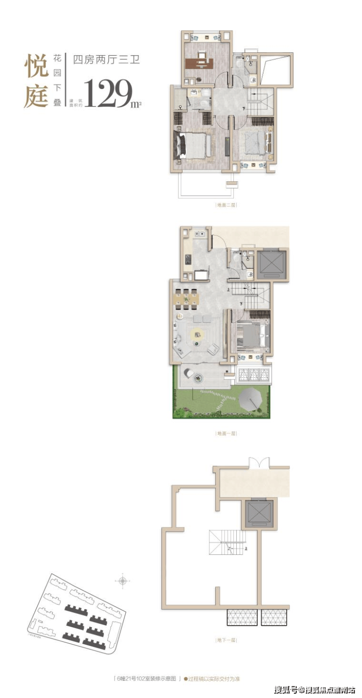 建面约129m²4房2厅3卫(下叠)