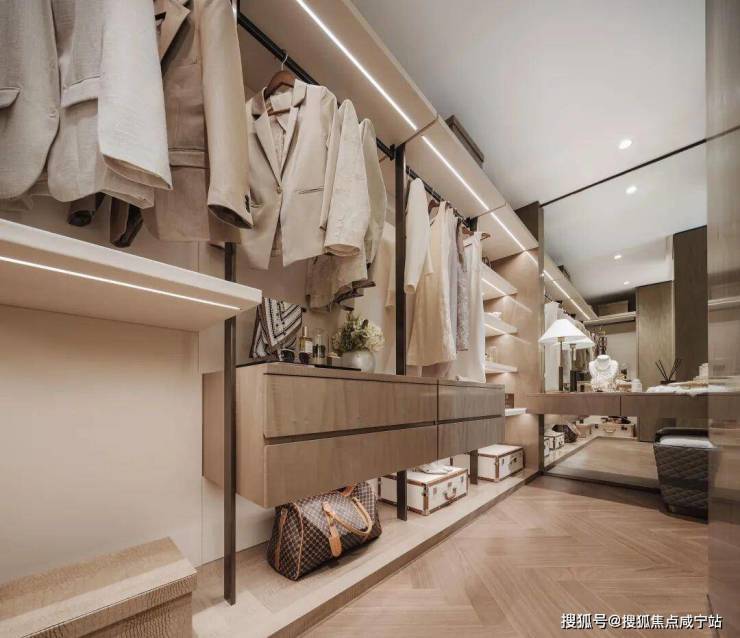 这个户型还有一个很大的亮点是主卧套房同样非常豪华,南向主卫+独立步入式衣帽间设计使用体验感还是很棒的。