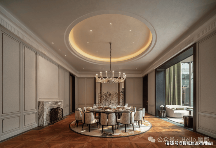 传承百年工艺手工打造拼花地板,隐匿式氛围光模拟塞纳河畔落日,器材选择上,为业主定制的沃特罗伦(WaterRower)品牌健身房, 全部采用珍贵的全木质健身器材,触感温润细腻