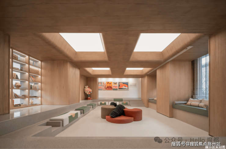 中央叠水空间,一次自然与叠水的相得益彰,灵感源自汇金湖:徐汇记忆里的成长映象,汇聚徐汇一代人的记忆与想象。
