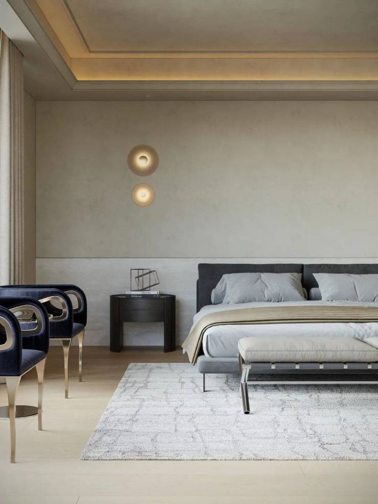 主卧室保留原来的吊顶,自此基础上涂刷艺术涂料,更契合整体风格。调整光源位置,让光影在空间中自由流淌,增添了一份松弛感。