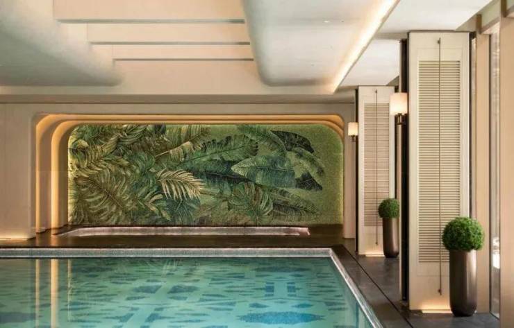 另外,水吧的一侧就是约10米高的落地玻璃,可以看到窗外下沉式庭院花园的美景,约6米的山石瀑布,层叠的流水,珍贵品种的树木……“复得返自然”的感觉,油然而生。