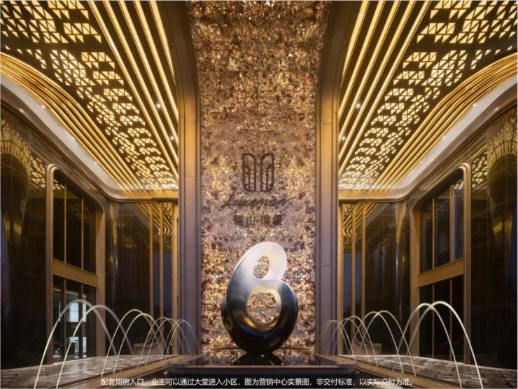 墙体采用约雪山蓝石材,搭配香槟色铝板,普拉达绿石材、安哥拉黑石材、真石漆保温一体板与大面积落地玻璃,叠水小品迎宾启幕归家礼序。景观雕塑,将“缦奢归璞”所追求的圈层礼制得以具象。敕造奢阔实景,境现嘉定主城高阶圈邻。