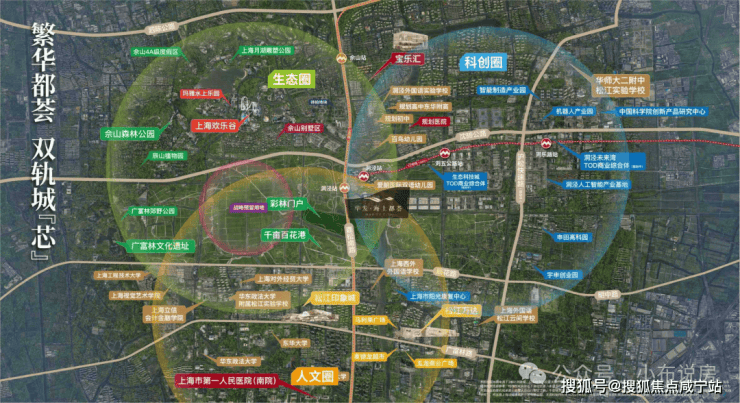 洞泾处在松江新城向北扩展的关键位置,一头连着G60科创走廊“一廊九城”,叠加经开区、九科绿洲、科技影都等产业平台,一头连着松江大学城,七所高校集聚,“高知+科创”人群在此叠加。