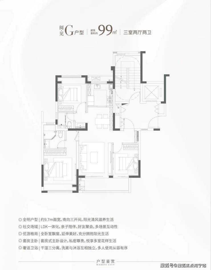 3、楼王H户型:270°环幕江景,绝佳视野和尺度