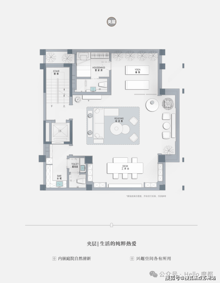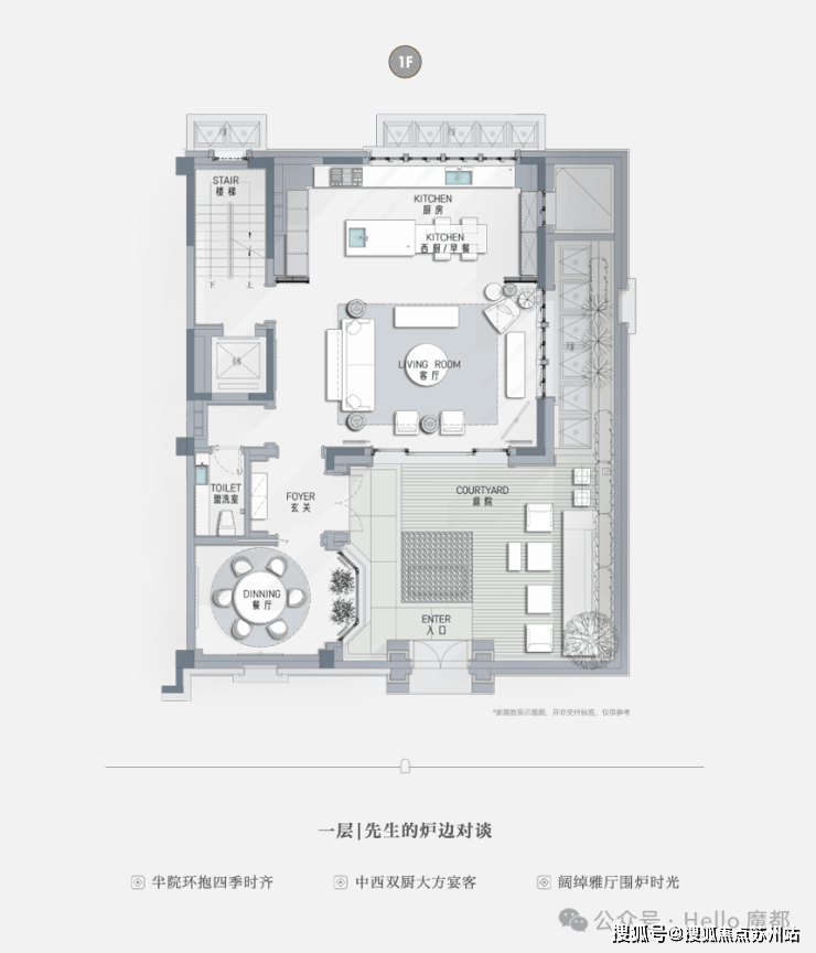 一层长辈套房设计,南向独立小庭院,莳花弄草,晨练太极自在四季