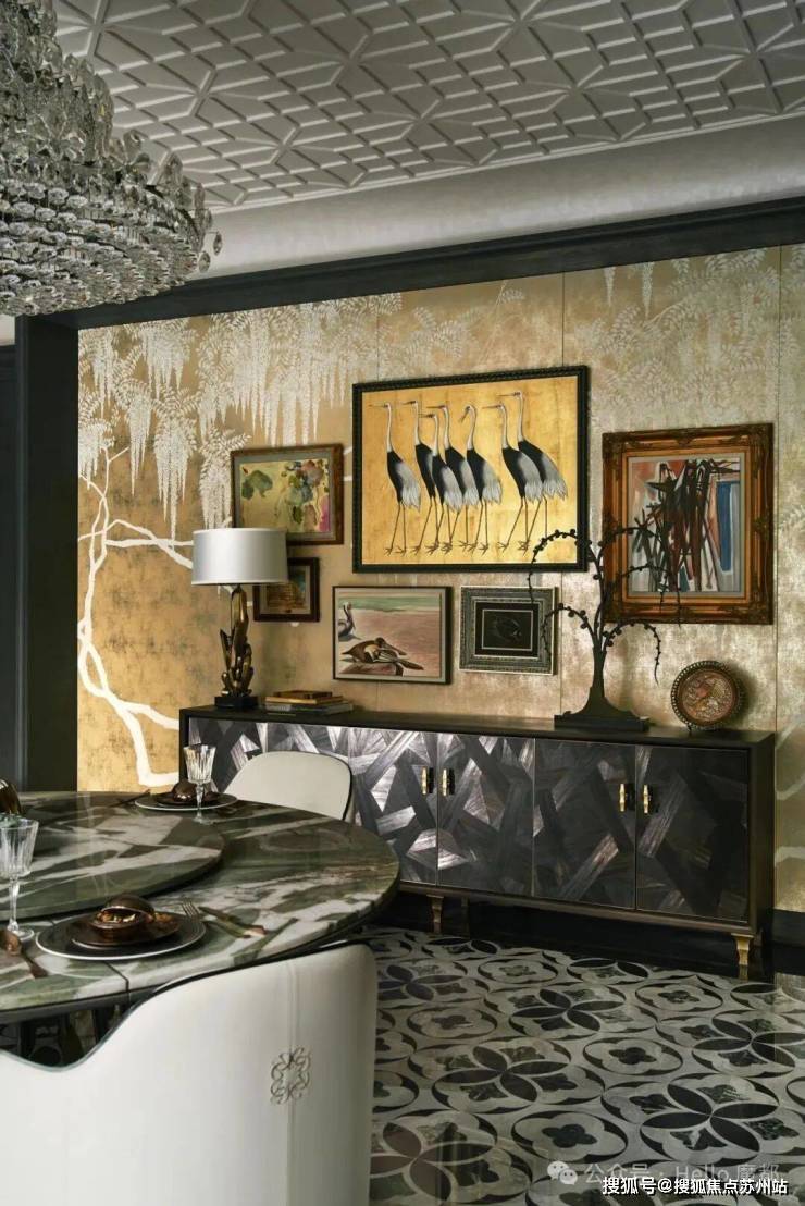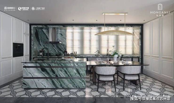 建筑面积约495㎡传家大宅,海派气质内外辉映;深色木饰面与柔和的刺绣主背景,框定空间层次格局,营造稳当厚重的氛围基调,法式留白的墙面与顶部造型,与原筑提取的典型拼花地砖相呼应,经典的精致与典雅,海派传家大宅的气度不言而明。