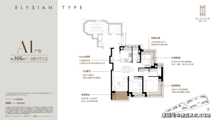 建筑立面转角处匠心设计约270度转角飘窗,打破传统方正格局,拓宽视野边界,将窗外美景尽收眼底。