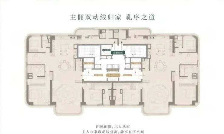 在产品打造上,二期罕见的四梯配置,主佣动线分离,匹配高端客户的更便捷更高效的居住需求。延续一期独门独户专属电梯门厅,二期的尺度将更为阔绰。户型建筑面积约360-875平方米,以更大的尺度,为高端客户创造卓越的大宅圈层。