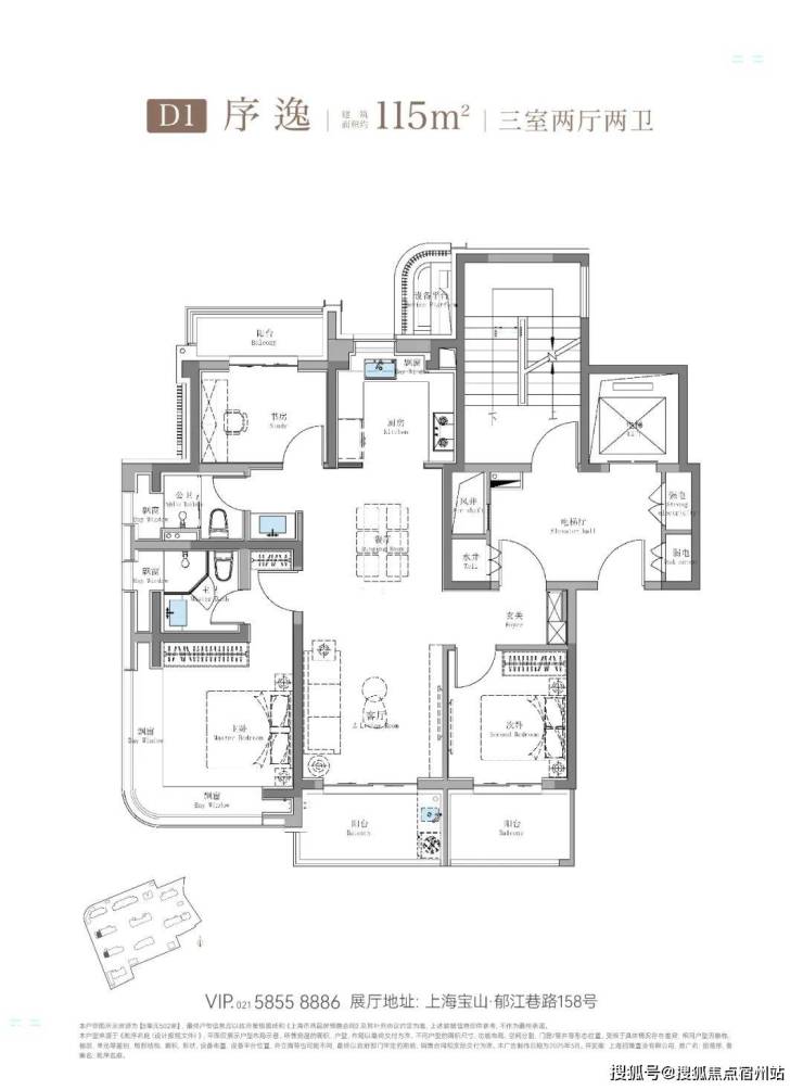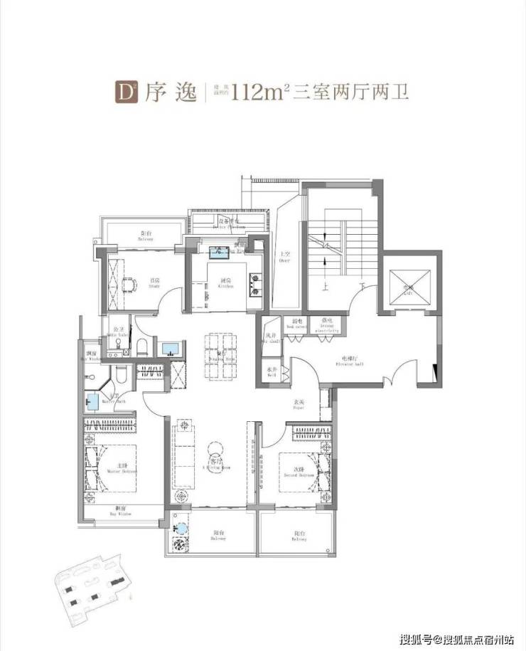 除了建面约100㎡3房外,这个建面约114㎡产品也是主打: