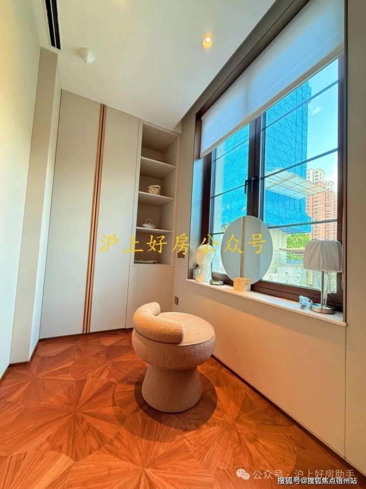 在今年上半年大家都在卷人字拼地板的基础上,外滩源著主卧地板升级为柳叶拼接,进一步做了升级: