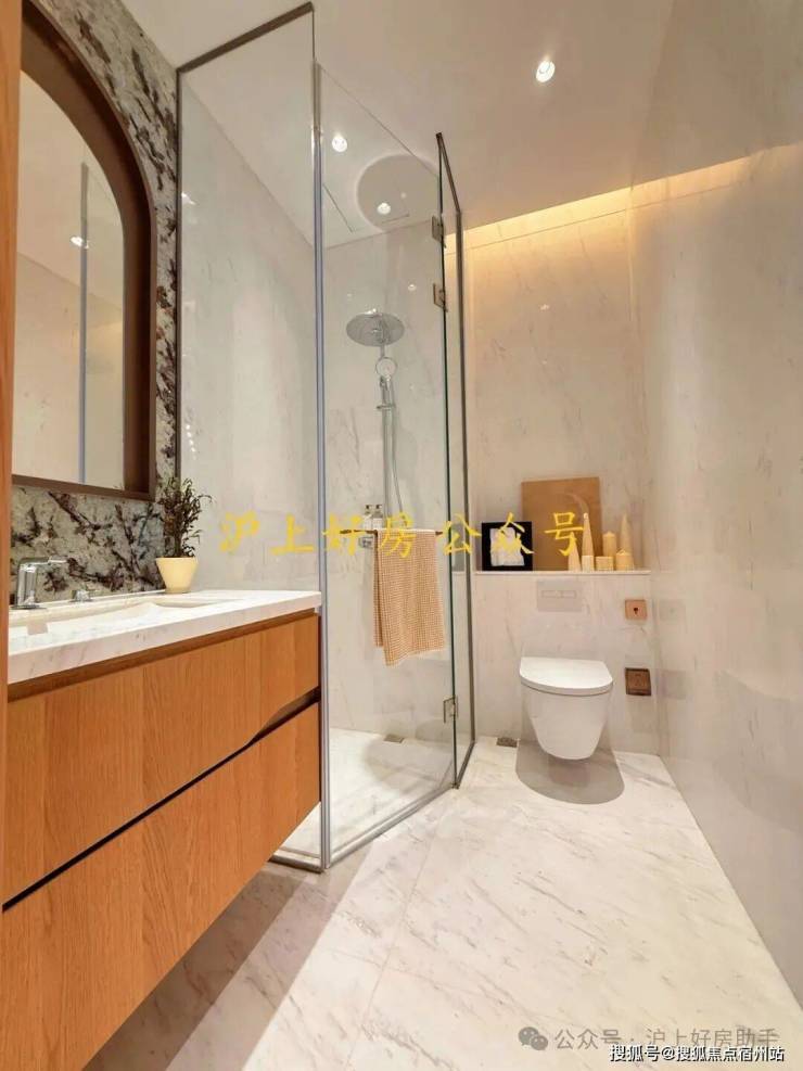 次卫则是采用不同风格,墙面统一采用米洞岩板、地面为深咖色瓷砖,黑金配色风格区别于看多了的海派设计,眼前一亮: