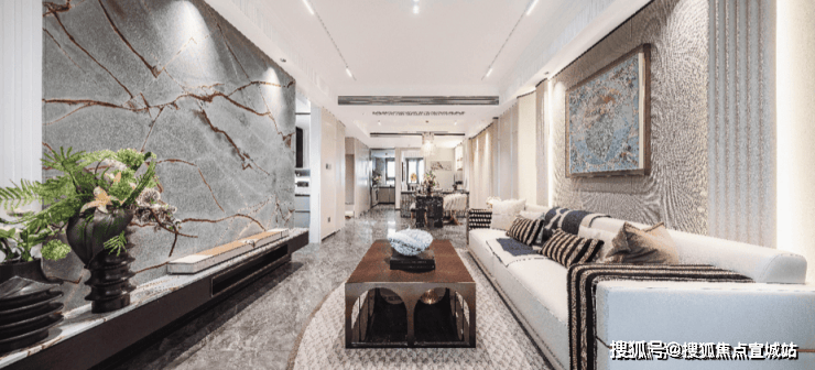 足足打造了三层地下空间,且 入户大堂同样采用了大面积石材铺设、奢石点缀和金属线条搭配,空间气场强大,归家的过程中,形成了非常奢华的视觉冲击力。