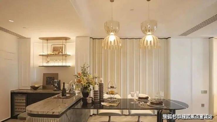 公区打造更是媲美奢华酒店,不仅有颜值,更有着满满的仪式感。嘉佩乐酒店风格的归家门厅,海派元素充满空间的每一个角落,地面的复古花纹,金属镂空装饰墙,普拉达绿的奢石点缀,仿佛穿越到了摩登时代。