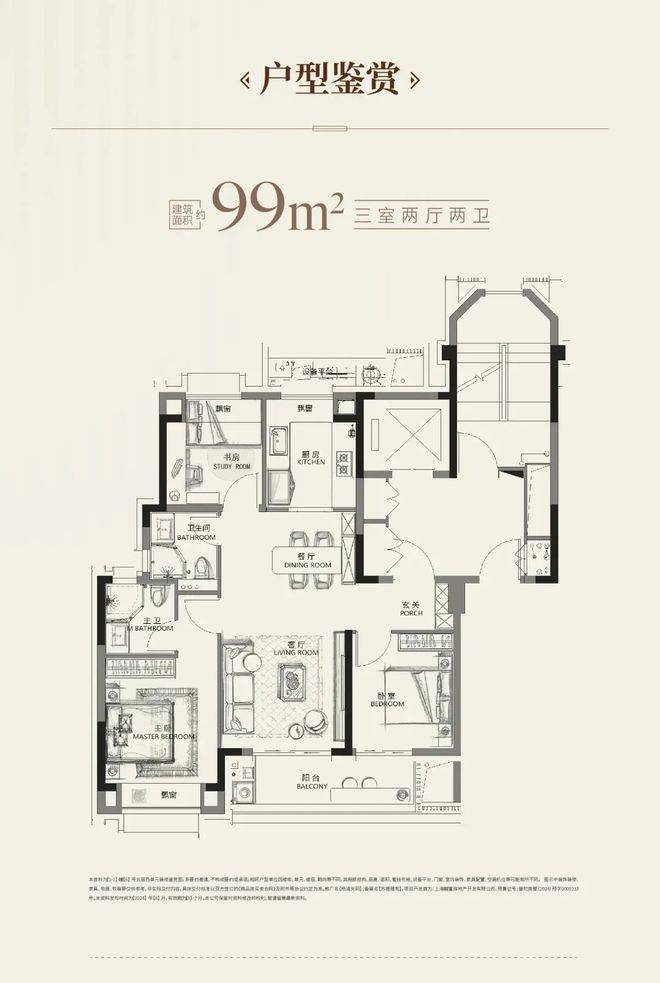 建面约99㎡经典飞机户型设计,南北通透,作息空间互不干扰;集约化过道+多飘窗设计,视觉向外延展性更大,越秀杨浦天玥售楼处电话:400-8787-740 ✅✅整体户型开阔感更强;独立玄关+双卫配置,保证了业主足够的私密性和舒适度;越秀杨浦天玥售楼处电话:400-8787-740 ✅✅南向次卧与阳台相连,使得室内尺度、采光及通透性都十分出彩。