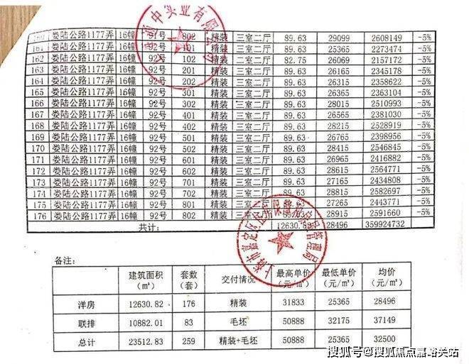 一房一价表: