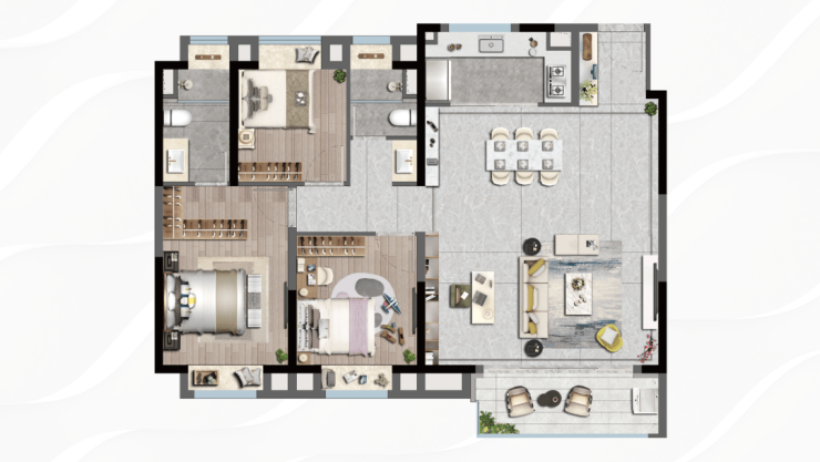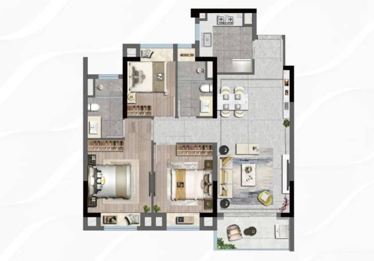 消除客餐厨阳台的空间界限,延展多元生活逸趣