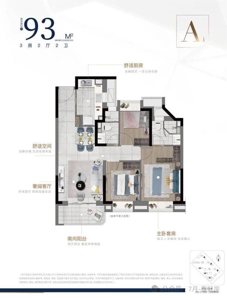 建面; A2户型93㎡ 三室两厅一卫