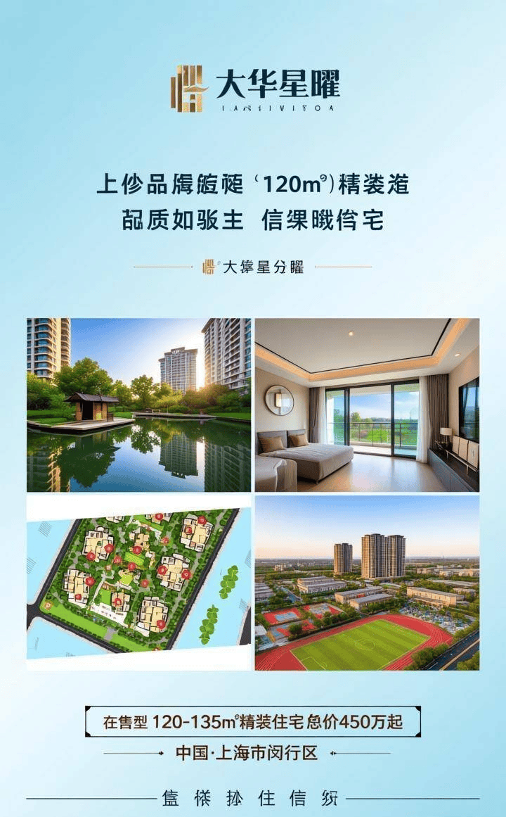 500米万达 |七站直达前滩「大华·星曜」,建面约120-135㎡4房热销中,上师大附属闵行实验学校一路之隔,收官房源臻席递减中,错过再无!