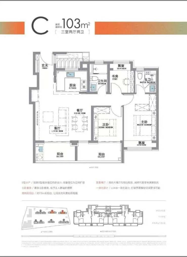“南向双阳台+南北双飘窗”,构筑真3房户型!