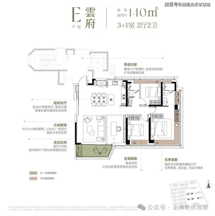 2、社区纯粹性:菁英圈层的「聚集效应」翡雲悦府用「双120㎡+」门槛:高层面积约120/140㎡3-4房、叠墅面积约170-230㎡,全社区几乎没有低于建面低于120㎡的户型,打造纯改善型社区。