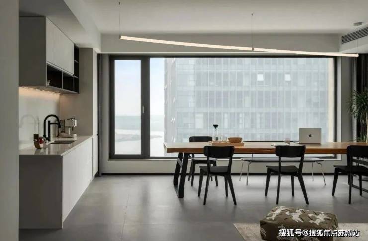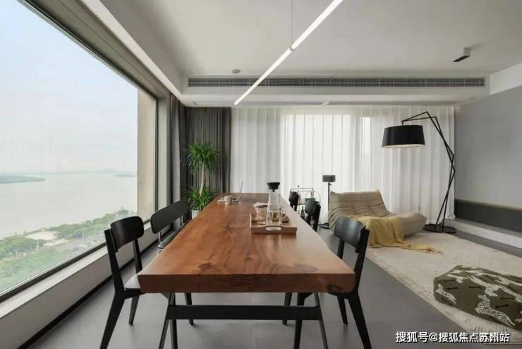 客餐厅采用一体化的设计,空间更加区域敞亮,恰到好处的留白带来了更多的高级感,用懒人沙发和长桌来划分空间,这种划分空间的方法不隔断空间,更加有层次,点线面结合更富东方的美学意境,让人与空间之间相互深度交流.