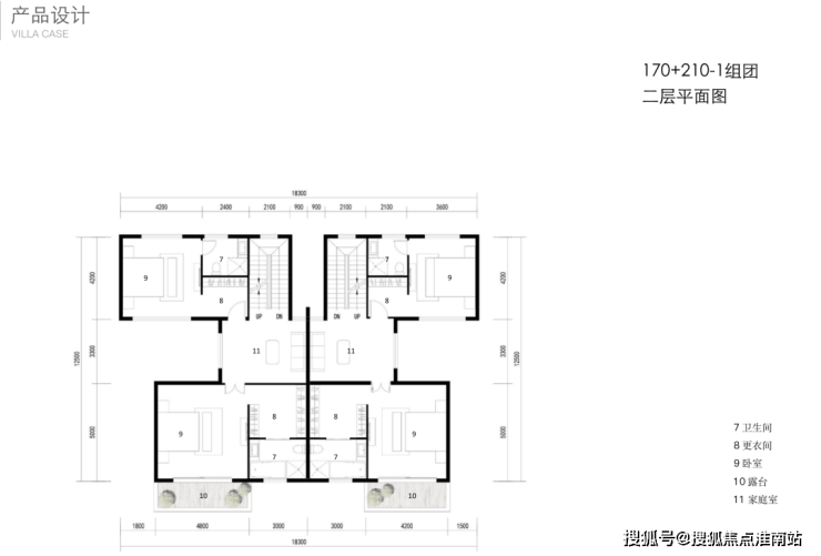 二层都是套房设计+露台+客厅挑空,190的二层是双套房、290的二层是三套房。